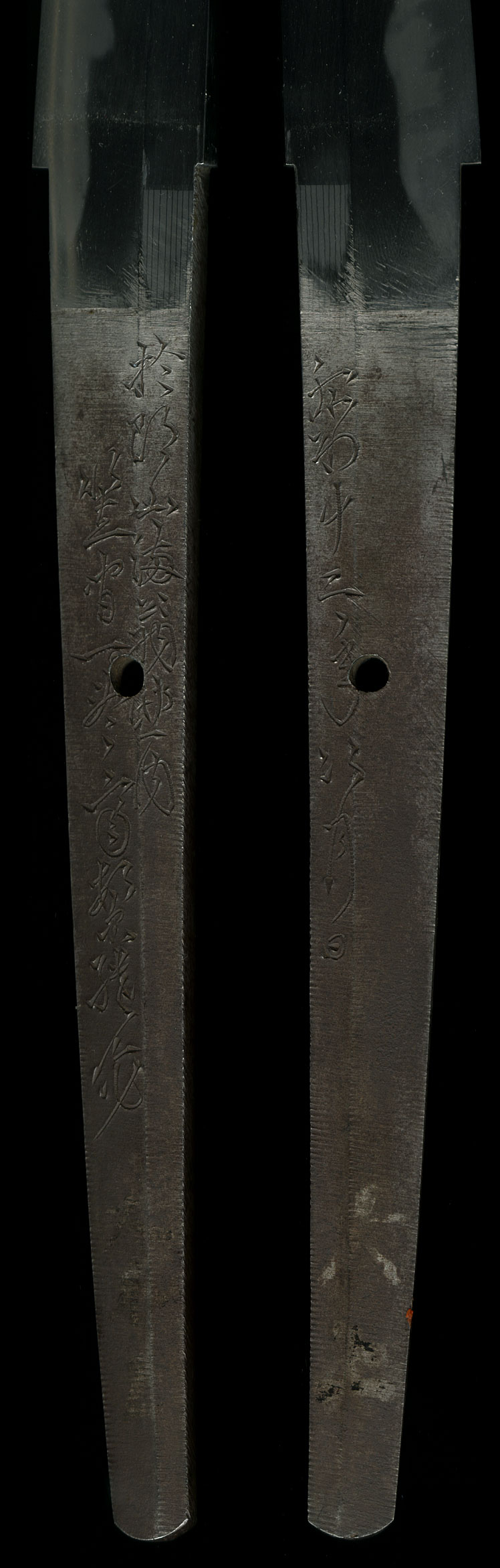 This blade is one of those that can be considered exceptional in its quality. The hamon of a very nice wide saka choji mixed with a ichimonji styled choji midare shows Shigetsugu’s skill. Very few artist could reproduce such a fantastic hamon during these times. Kinsuji appears, with lots of ashi with yo. The blade has the appearance of an older high level smith’s work, and I have only seen 2 better examples. The forging is a very well knit ko itame with ji nie. Chikei appears in the ji. The boshi is a midare style with a wide look.