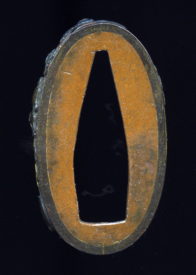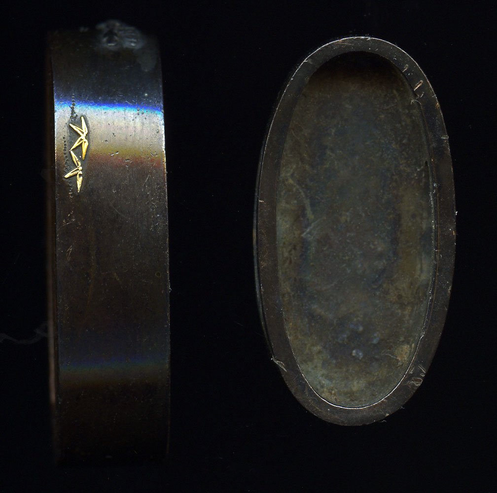 Done in shakudo, gold, silver and red copper. One center is missing on a flower but otherwise in good