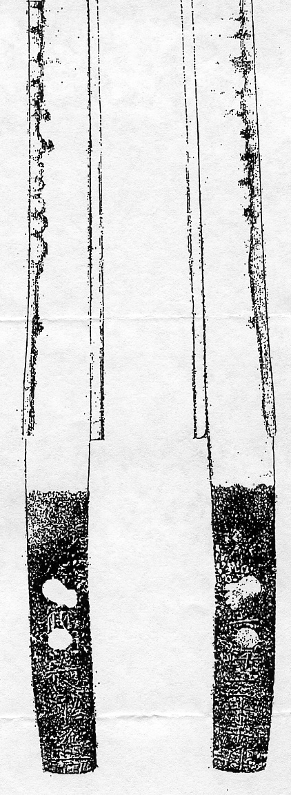 This tanto which is done in traditional hirazukuri shape, is very classic of Kamakura Bizen tanto works. This is the style of which they were famous for, when one reads about such makers in all of the books. The hamon is a very well done sugu gunome midare with very well done fine nie. Sunagashi and small kinsuji appear within the hamon. The nioi guchi is bright as it should be. The jigane is a well knit ko itame with some mokume. Nice chikei is seen along with ji nie. The utsuri is very prominent, sweeping up from the tops of the hamon in a style similar to that of O Kanemitsu. The utsuri is especially strong in the monouchi area and is quite enjoyable just like what one reads in the books.