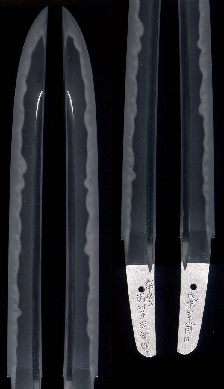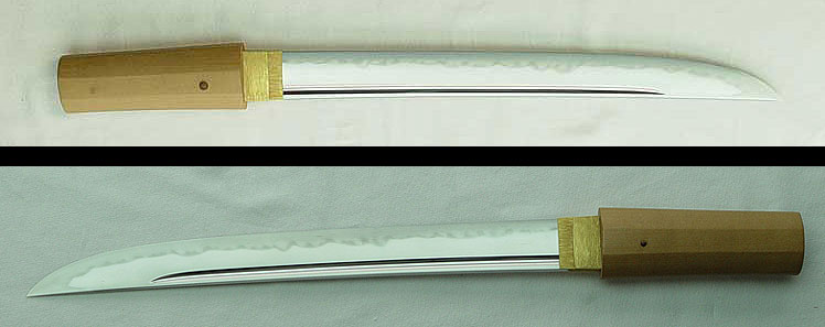 Tanto made by the famous living national treasure smith Seiho Sumitani. Seiho (real name is Yoichiro), received the title of living national treasure in 1981. He was a student of Sakurai Masayuki, and then separated to do his own work. He greatly admired the Kamakura Bizen swords, thus making this type of sword his main goal of manufacture. He specialized in choji midare, often implementing this hamon on most of his swords. This tanto on our oage is done in the Kamakura Bizen den. Nice saka gunome choji midare with ashi make up most of the hamon. The steel is very well refined, and done in ko-itame. The hamon is very clear and brite showing his skill in tempering, the steel is also well knit without flaw. In a perfect Japanese professional polish. Swords by Seiho are now rare as he passed away several years ago. He is one of the few that have attained Japans highest honor by the Japanese government. Ningen Kokuho. |