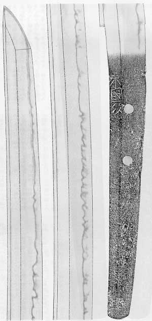 The blade has a little slender mi-haba, funbari, torii-zori or Ko-zori and dignified tachi-sugata with chu-kissaki. The jihada is most finely forged except the running o-hada then it is covered with abundant ji-nie. The hamon is in ko-nie-deki and tempered in small pattern that mixes ko-choji and ko-gunome. Also Ko-saka-ashi and mune-yaki are the decisive factors to attribute to one of the Rai school. Though it appears to have been difficult to go to Rai Kunitsugu since it is one of his early works and does not show his typical workmanship. Therefore many votes went to Rai Kunitoshi, Ryokai, Rai Kuniyuki and Rai Kunimitsu in addition to votes for smiths of the Enju school. Only two persons hit Rai Kunitsugu this time. Votes for Rai Kunitoshi, Ryokai and Rai Kunimitsu were give ‘Atari’ and votes for Rai Kuniyuki and Niji Kunitoshi ‘Dozen then votes for smiths of the Enju school ‘Jun-dozen’. Niji Kunitoshi makes tachi-sugata with wide mi-haba and choji is more emphasized. Rai Kuniyuki tempers hamon in more complicated pattern and it mixes a unique midare called ‘karimata’ (fish-tail shaped midare) and his workmanship looks somewhat classical on the whole. Voting for the Enju school is not bad idea though their nioi-guchi and their jigane are inferior to those of Kunitsugu in brightness and clearness. Apart from ‘Atari’ and ‘Dozen’, there were many votes for the Ko-aoe school then some votes for the Ko-bizen, Ukai and Awataguchi (Kunitomo, Hisakuni and Kuniyasu) schools. It seems that people who voted for the Ko-aoe school mixed up the plain hada that looks like jifu with sumi-hada of the Aoe school. It is important to judge if this hada is original one or the result of tiredness. Taking a careful look at the blade, it has scarce hira-niku and becomes to know that it has lost hira-niku after many polishes. Jihada of the Ko-aoe school becomes unique mokume-hada called chirimen-hada then sumi-hada is combined in places. In addition, these older smiths should make tachi-sugata with deep sori but the sori becomes almost straight from the monouchi area, and the Ko-aoe and Ko-bizen schools produce irregular and dark jifu-utsuri also the Ukai school does different utsuri. Incidentally, Kunitsugu signs in small characters with thin chiseling and uses a character of ‘Kuni’ with the shorter side at the top. This is very rare extant tachi of Rai Kunitsugu with ubu-nakago and it gives us a lot of valuable information to study this smith. |