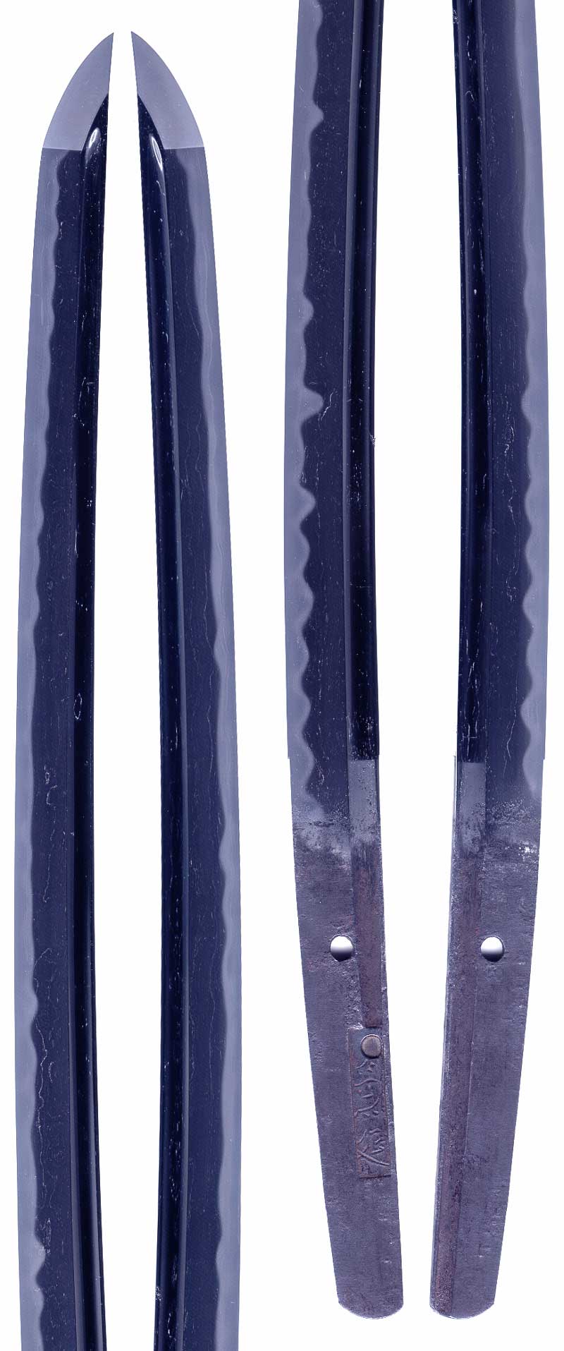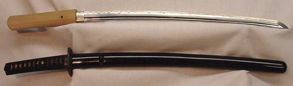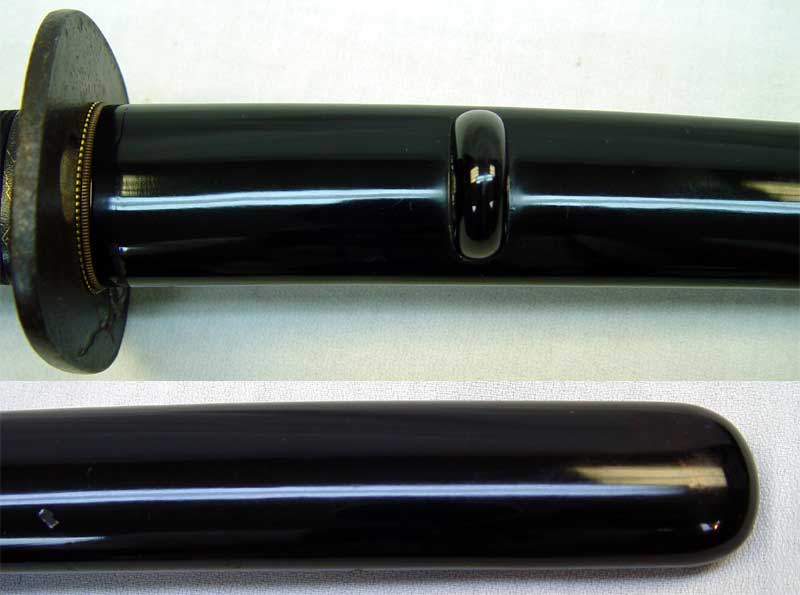 solid silver habaki, as well as the saya in black lacquer. Tsuba is