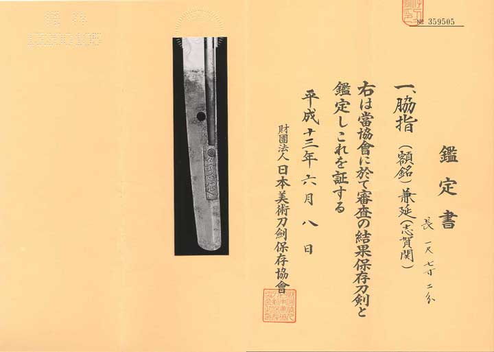 mei known as a "gaku uchi mei". This sword is made by Kanenobu,