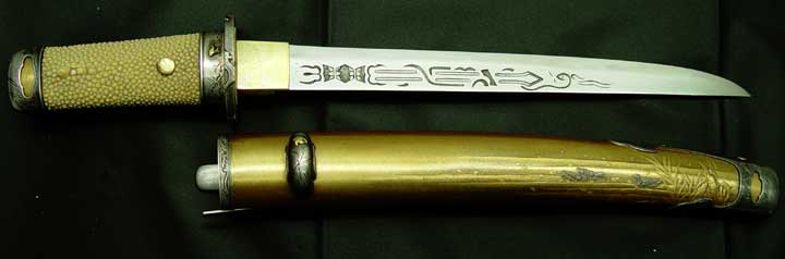 and is all original. Blade is a hirazukuri with carving of So-no Kurikara