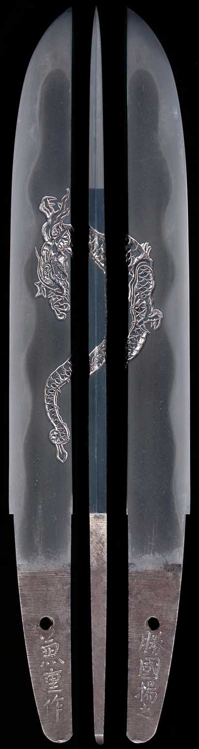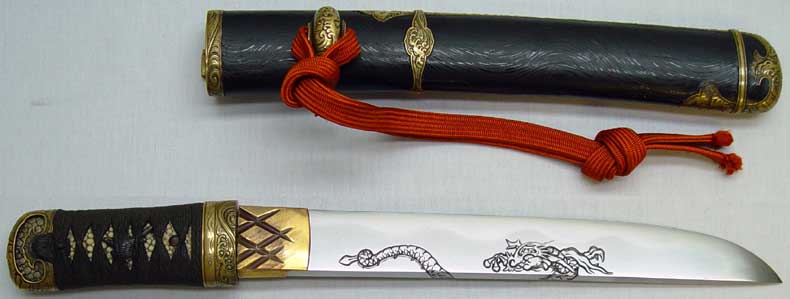 wide hirazukuri tanto with a very rare style of carving of a dragon.